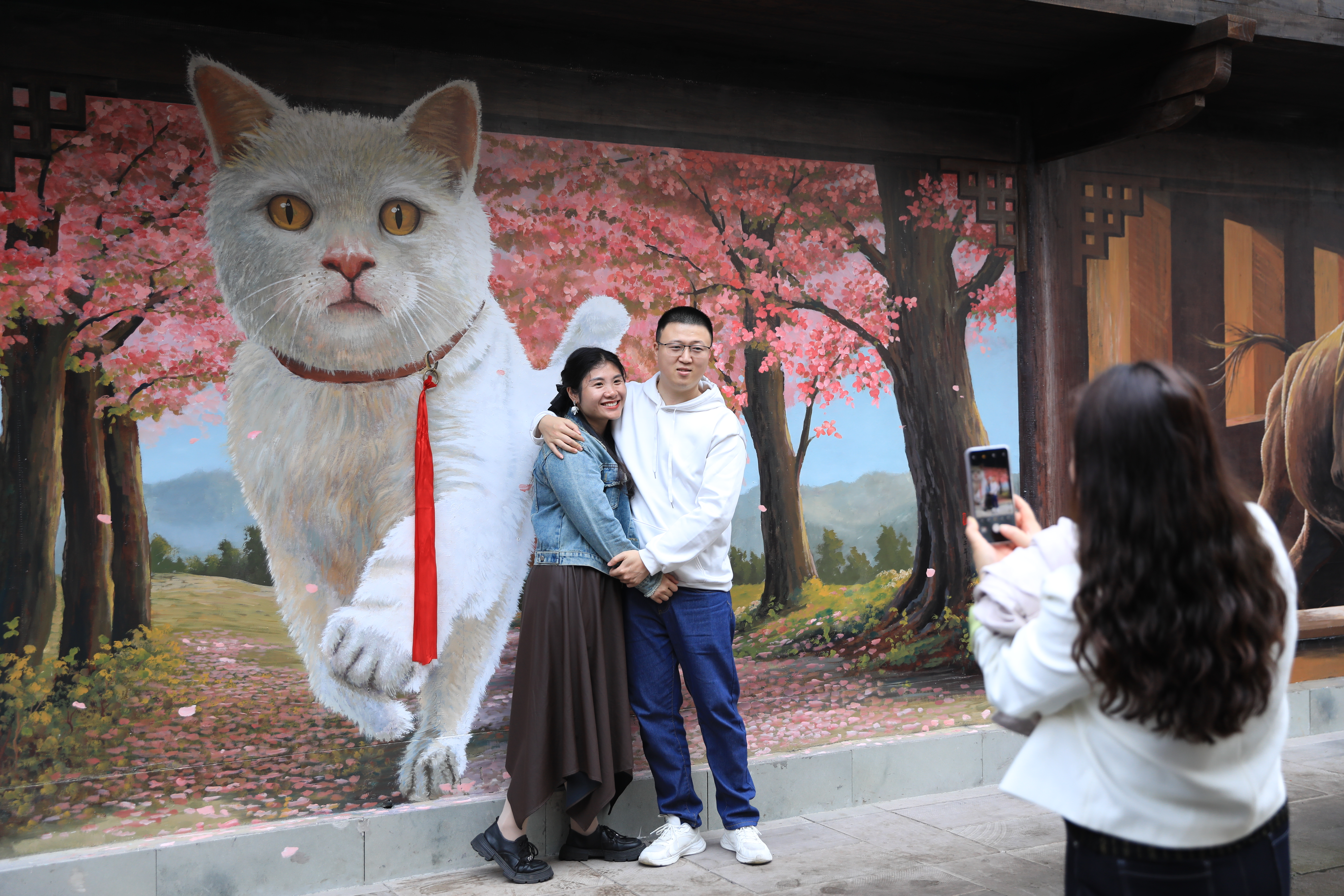 协兴老街承载着160余年的川东民居记忆,青砖黛瓦间藏着岁月沉淀的烟火气息。此次全新亮相的3D画长街,以老街为天然画布,将川东民俗风情、广安本土元素、川剧非遗魅力三大特色元素巧妙融合,用立体生动的画面,串联起改革开放以来的民生变迁、农业增收致富的奋斗图景、实干兴邦的时代精神。